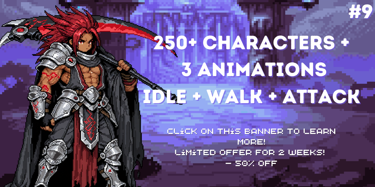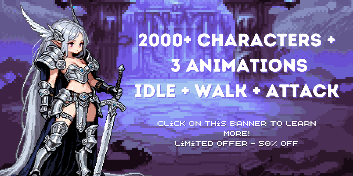 - 50+ Animated Characters + 3 animations (Idle-Attack-Walk) (64x64)